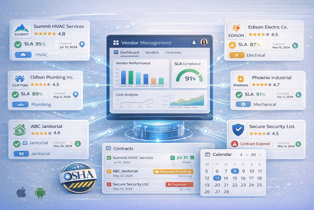 FacilityFlow's Vendor and Contract Management module provides end-to-end visibility and control over your entire vendor ecosystem. From vendor onboarding and qualification to contract lifecycle management, SLA monitoring, and performance scorecards, our platform eliminates spreadsheets and email chaos while ensuring compliance and optimizing costs.